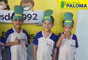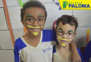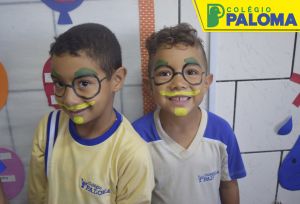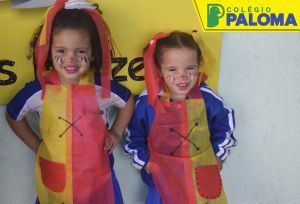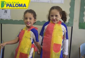 A felicidade estava estampada no rostinho dos nossos alunos por representarem a Emília e o Visconde de Sabugosa.