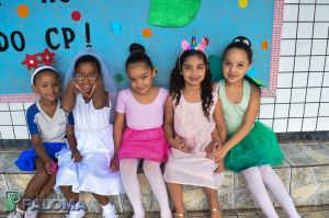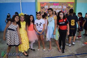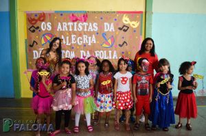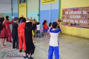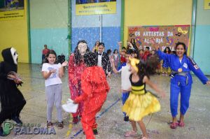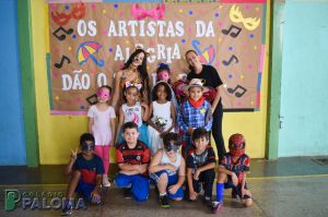 Os alunos caíram na folia do baile carnavalesco que teve como tema “Os artistas da alegria”, dançando e brincando com serpentinas e confetes.