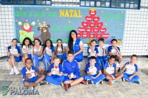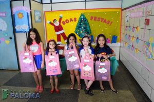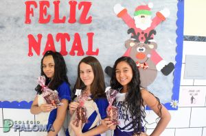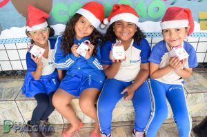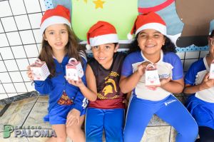 Em clima de alegria e gratidão por mais um ano letivo concluído com grandes realizações, os alunos da Educação Infantil ao Ensino Médio receberam em forma de carinho um mimo especial e ainda teve comemoração em clima natalino com a participação dos alunos da Educação Infantil e Fundamental I. O Colégio Paloma deseja aos alunos e seus familiares um Ano Novo repleto de alegria, amor, harmonia e paz.