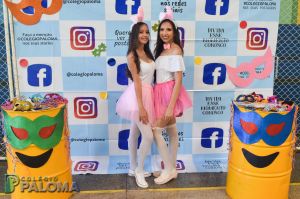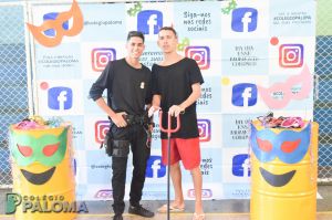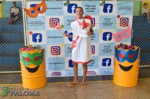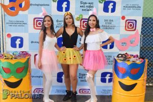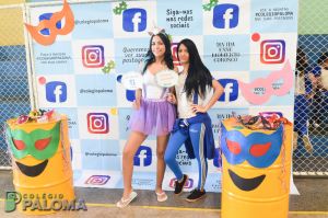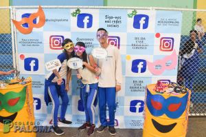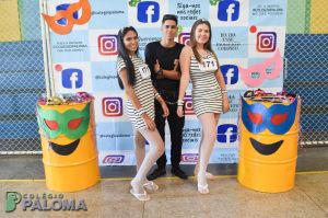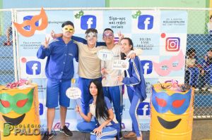 Com muita animação, os alunos do Ensino Fundamental II e Ensino Médio pousaram para fotos fazendo uso de adereços durante o intervalo.