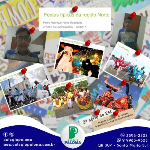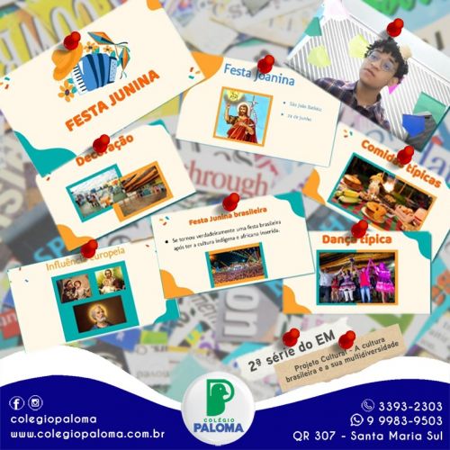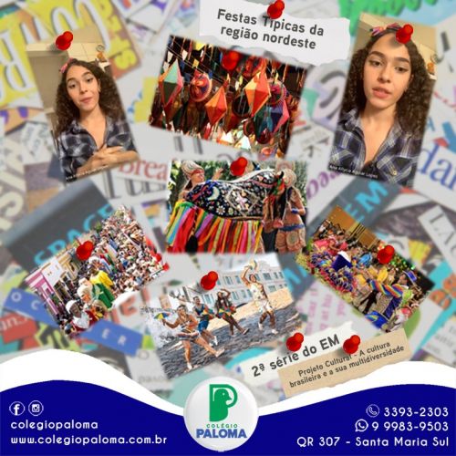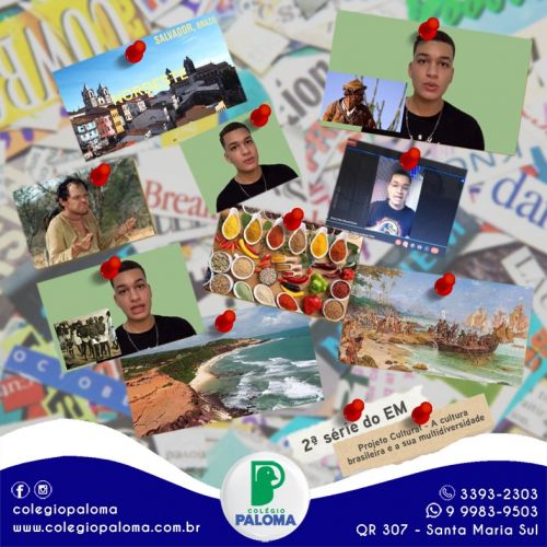 Os alunos da 2ª série do Ensino Médio pesquisaram e apresentaram seus projetos sobre a multidiversidade que a cultura brasileira apresenta, destacaram aspectos relevantes das quatro regiões brasileiras, bem como os usos, costumes, danças, festas e principais comidas típicas.