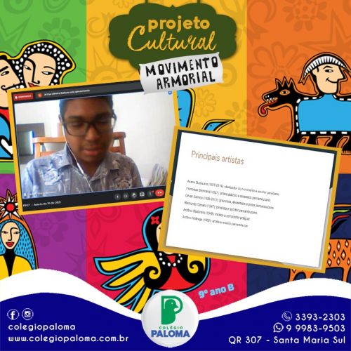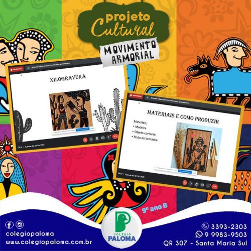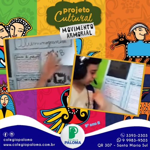 Quando falamos de cultura, falamos sobre o cultivar e o crescer dos valores dentro de uma sociedade. A turma do 9º ano B foi convidada a conhecer o Movimento Armorial, que foi fundado por Ariano Suassuna na década 70 que tinha a intenção de realizar uma arte autêntica brasileira baseada nas raízes populares.
