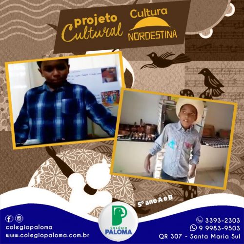 O projeto das turmas do 5º ano teve como tema a cultura nordestina. Os alunos foram instigados a pesquisar vários aspectos sobre a rica cultura nordestina, como o artesanato, a produção literária, a produção musical, a culinária, festas típicas etc. O engajamento dos alunos no projeto foi incrível! Puderam matar um pouco a saudade das comemorações juninas, aprenderam muito e o principal, puderam compartilhar o que aprenderam.