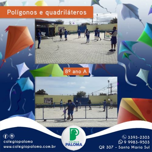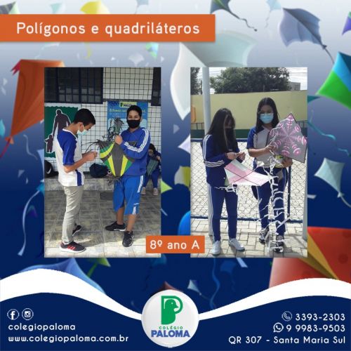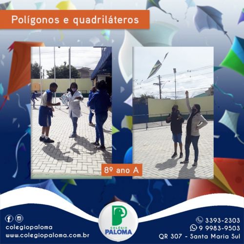 A turma do 8° ano A teve uma aula bem diferente, aprenderam sobre polígonos e quadriláteros soltando pipas. Tem aula mais divertida do que essa?
