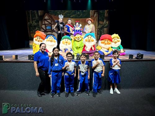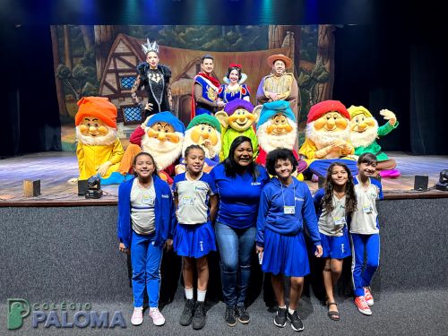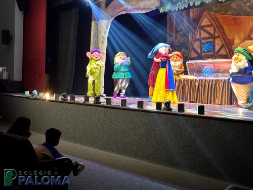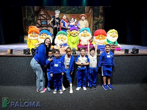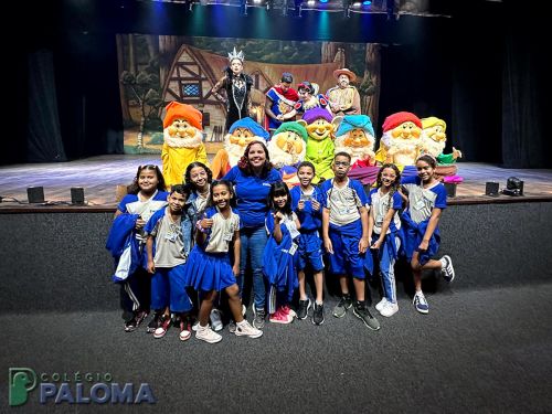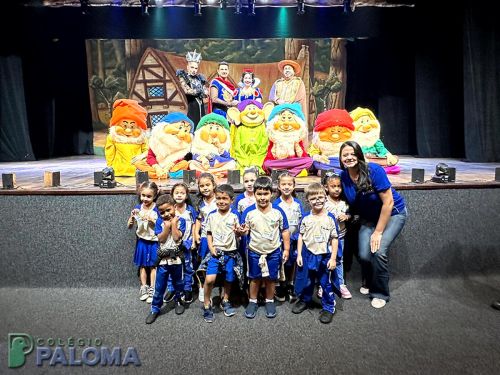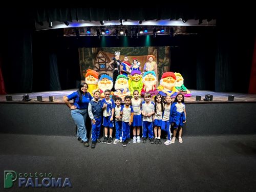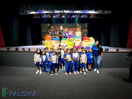 Na última semana, os alunos do Maternal ao 4° ano do Colégio Paloma tiveram a oportunidade de vivenciar a magia do teatro. Eles assistiram à clássica peça "Branca de Neve e os Sete Anões", uma experiência enriquecedora que, além de entreter, trouxe importantes lições sobre amizade, coragem e bondade. A visita ao teatro proporcionou aos nossos pequenos momentos de alegria e encantamento, reforçando o compromisso do colégio em oferecer atividades que aliam aprendizado e diversão. Esses momentos especiais contribuem para o desenvolvimento cultural e emocional dos nossos alunos, tornando sua jornada escolar ainda mais significativa.