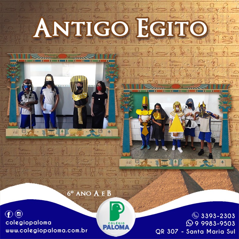 Os alunos do 6º ano A e B apresentaram um seminário na aula de história, sobre o Antigo Egito. Após pesquisa, os alunos confeccionaram suas fantasias e organizaram suas apresentações.