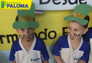 A felicidade estava estampada no rostinho dos nossos alunos por representarem a Emília e o Visconde de Sabugosa.
