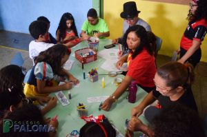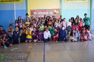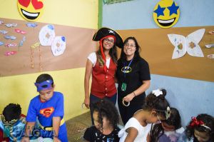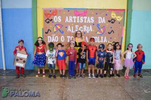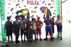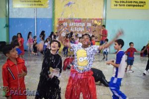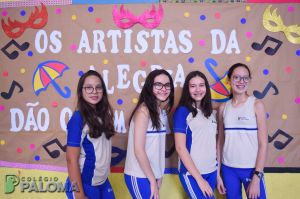 Os alunos caíram na folia do baile carnavalesco que teve como tema “Os artistas da alegria”, dançando e brincando com serpentinas e confetes.