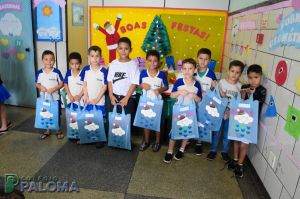 Em clima de alegria e gratidão por mais um ano letivo concluído com grandes realizações, os alunos da Educação Infantil ao Ensino Médio receberam em forma de carinho um mimo especial e ainda teve comemoração em clima natalino com a participação dos alunos da Educação Infantil e Fundamental I. O Colégio Paloma deseja aos alunos e seus familiares um Ano Novo repleto de alegria, amor, harmonia e paz.