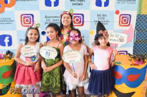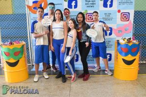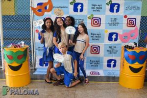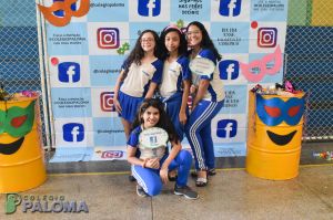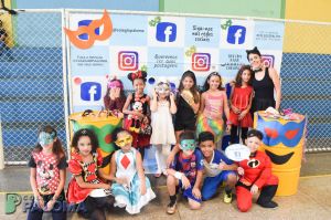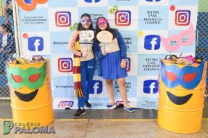 Com muita animação, os alunos do Ensino Fundamental II e Ensino Médio pousaram para fotos fazendo uso de adereços durante o intervalo.