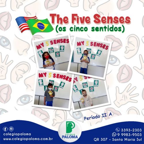O corpo humano é composto de cinco sentidos, que devem ser trabalhados desde os primeiros aninhos de vida, pois garantem a percepção do ambiente em que estamos inseridos, reconhecendo tudo que está em nosso redor. Os alunos do Período II A puderam identificar esses sentidos, The Five Senses (vision, hearing, touch, smell and taste) de uma forma diferenciada e significativa na aula de inglês, com o Ensino Bilíngue.