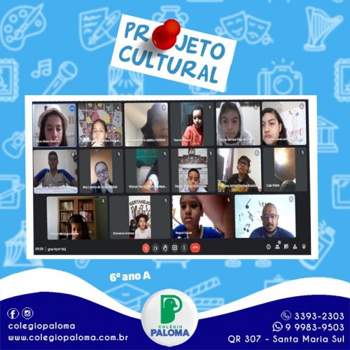 A cultura brasileira, assim como a formação étnica do povo brasileiro, é vasta e diversa. Nossos hábitos culturais receberam elementos e influências de povos indígenas, africanos, portugueses, espanhóis, italianos e japoneses, entre outros, devido à colonização, à imigração e aos povos que já habitavam aqui, são elementos característicos da cultura brasileira a música popular, a literatura, a culinária, as festas tradicionais nacionais, como o Carnaval, e as festas tradicionais locais, como as Cavalhadas de Pirenópolis, em Goiás, e o Festival de Parintins, no Amazonas. Assim sendo, os alunos do 6º ano A realizaram um belo trabalho mostrando a diversidade das músicas e das danças que representam o povo brasileiro.