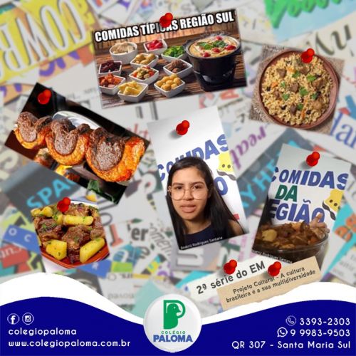 Os alunos da 2ª série do Ensino Médio pesquisaram e apresentaram seus projetos sobre a multidiversidade que a cultura brasileira apresenta, destacaram aspectos relevantes das quatro regiões brasileiras, bem como os usos, costumes, danças, festas e principais comidas típicas.