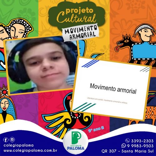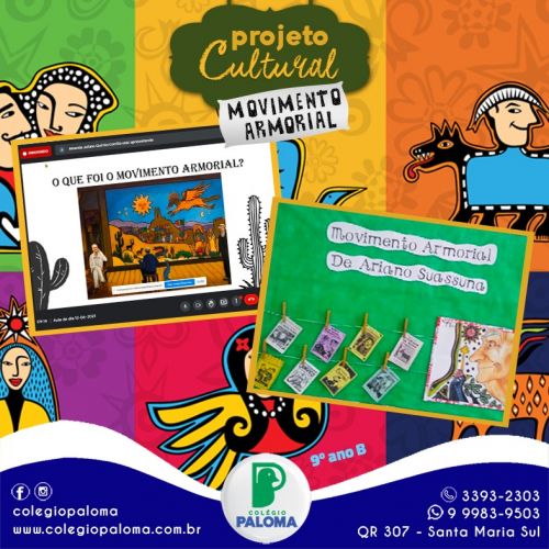 Quando falamos de cultura, falamos sobre o cultivar e o crescer dos valores dentro de uma sociedade. A turma do 9º ano B foi convidada a conhecer o Movimento Armorial, que foi fundado por Ariano Suassuna na década 70 que tinha a intenção de realizar uma arte autêntica brasileira baseada nas raízes populares.