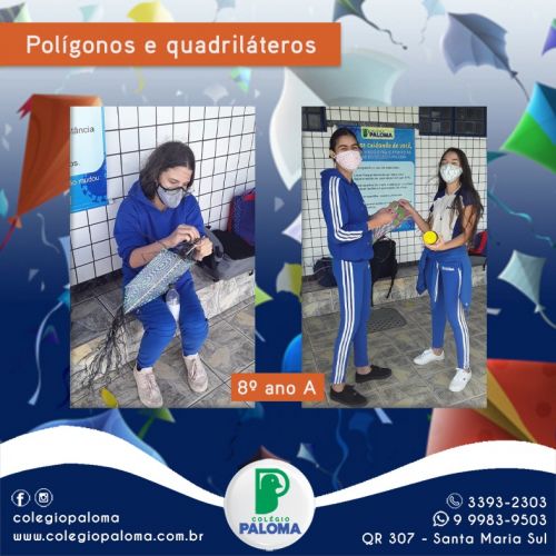 A turma do 8° ano A teve uma aula bem diferente, aprenderam sobre polígonos e quadriláteros soltando pipas. Tem aula mais divertida do que essa?