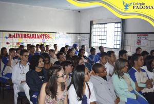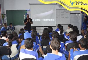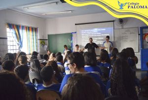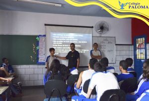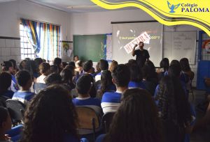O Colégio Paloma junto com o Conselheiro Tutelar Hessley proporcionaram um momento de orientação e reflexão para os alunos do Ensino Fundamental II e Médio sobre um assunto que tem deixado muitas famílias preocupadas com o acesso dos filhos nas redes sociais, o chamado “Jogo da baleia azul”. O conselheiro tutelar explicou aos alunos a verdadeira história relacionada a esse assunto, mostrando os caminhos que os alunos podem seguir para nunca participarem de desafios como este e também como ajudar alguém que esteja em uma situação parecida. Foi um momento de partilha, de tirar dúvidas e esclarecimentos.