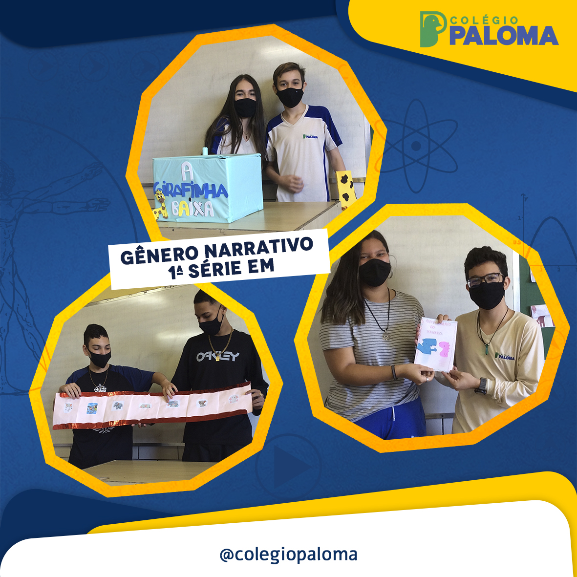 Os alunos da 1ª série do Ensino Médio criaram livrinhos narrativos e apresentaram de uma forma bem criativa, abordaram temas sobre respeito às diferenças, amizade, superação, adolescência etc.