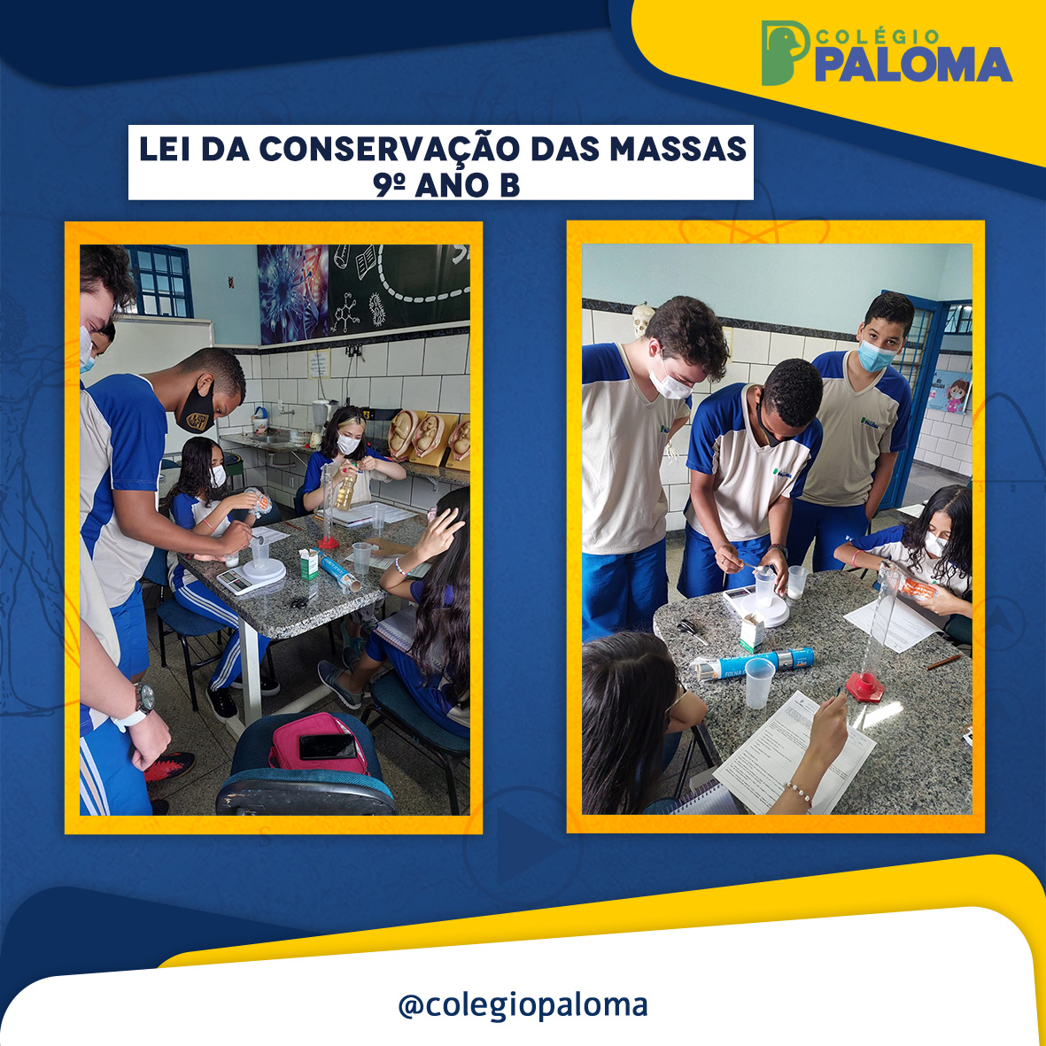 Os alunos do 9º ano B do Ensino Fundamental II foram ao laboratório de ciências para uma aula prática sobre a lei da conservação das massas, ou também conhecida Lei de Lavoisier.