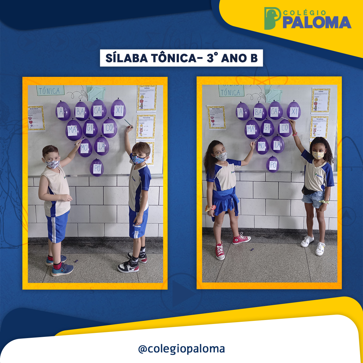 Estourando o balão da sílaba mais forte, os alunos do 3° ano B do Ensino Fundamental I aprenderam se divertindo o que é uma sílaba tônica e sua classificação quanto a tonicidade.